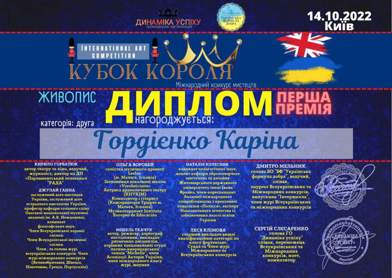 Щиро вітаємо володарку першої премії ГОРДІЄНКО КАРІНУ та викладача АНТОНІНУ КРАВЕЦЬ!!! Філія РОКИНІ.