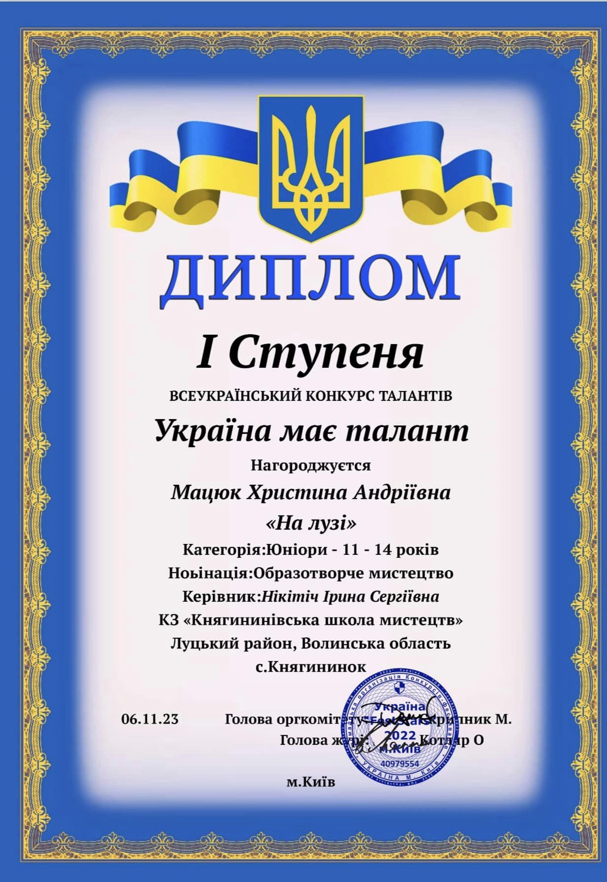 Диплом І ступеня здобула учениця Христина Мацюк.