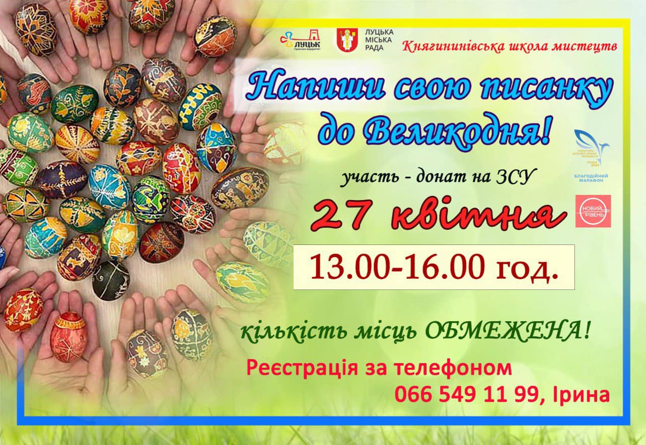 Майстер клас «Напиши свою писанку до Великодня» проведено в рамках благодійного проєкту «Культура – духовні крила перемоги». Всі кошти, зібрані у процесі проведення майстерки будуть передані на потреби ЗСУ.