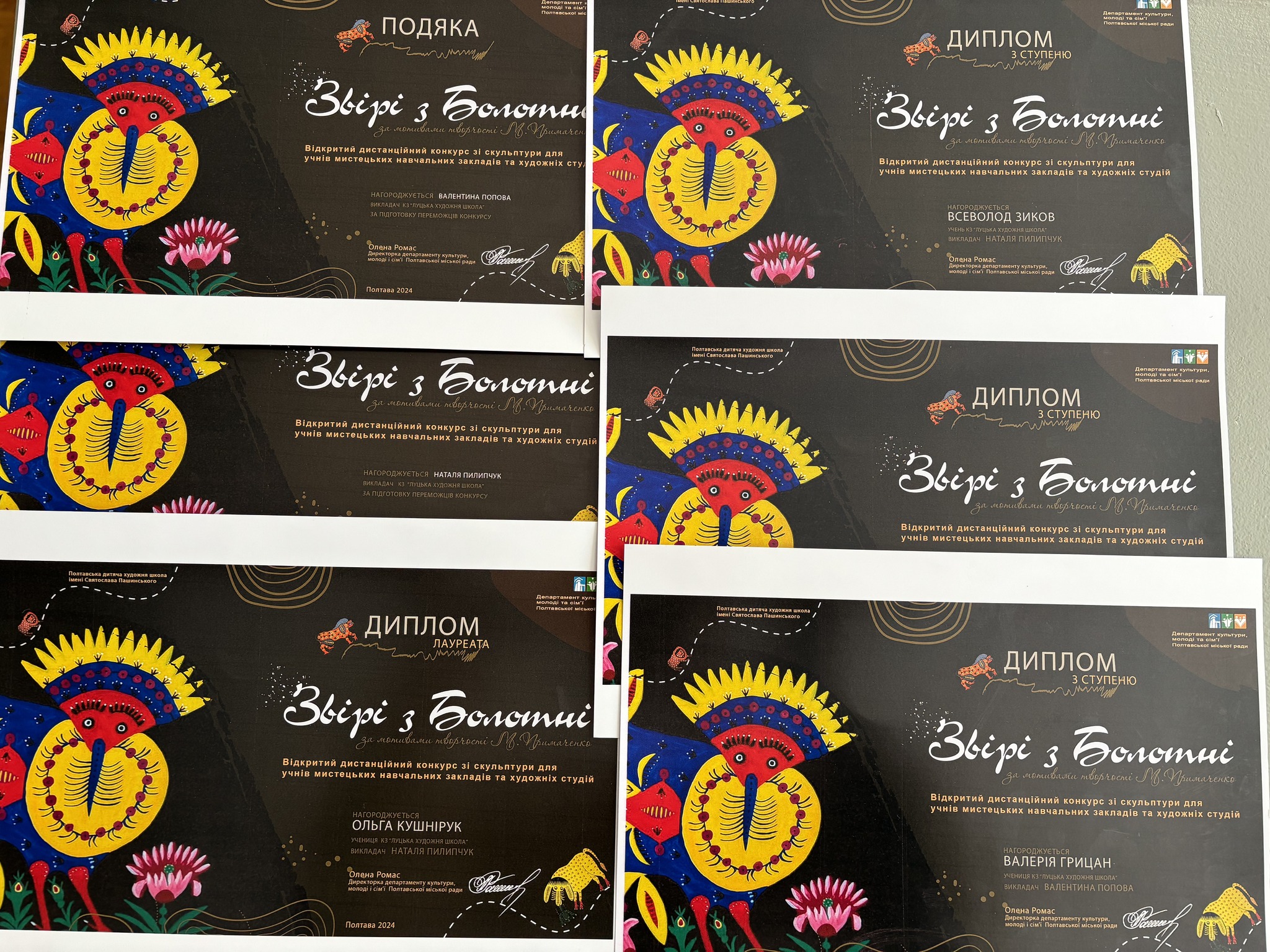 Учні школи взяли участь у Відкритому дистанційному конкурсі зі скульптури, присвяченому 115-й річниці з Дня народження Марії Приймаченко, для учнів мистецьких навчальних закладів “Звірі з Болотні”, який проводився на базі Полтавська дитяча художня школа імені Святослава Пашинського.