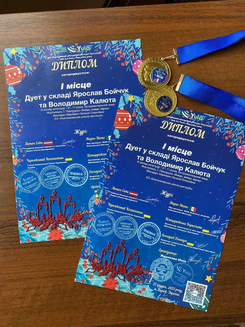 Дует у складі Ярослава Бойчука та Володимира Калюти виборов І місце у ІІІ вікововій категорії, інструментальний жанр фортепіано.