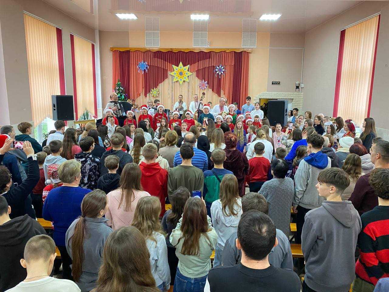 На завершення свята юні артисти та глядачі натхненно заспівали популярну, любиму колядку «Нова радість стала».
