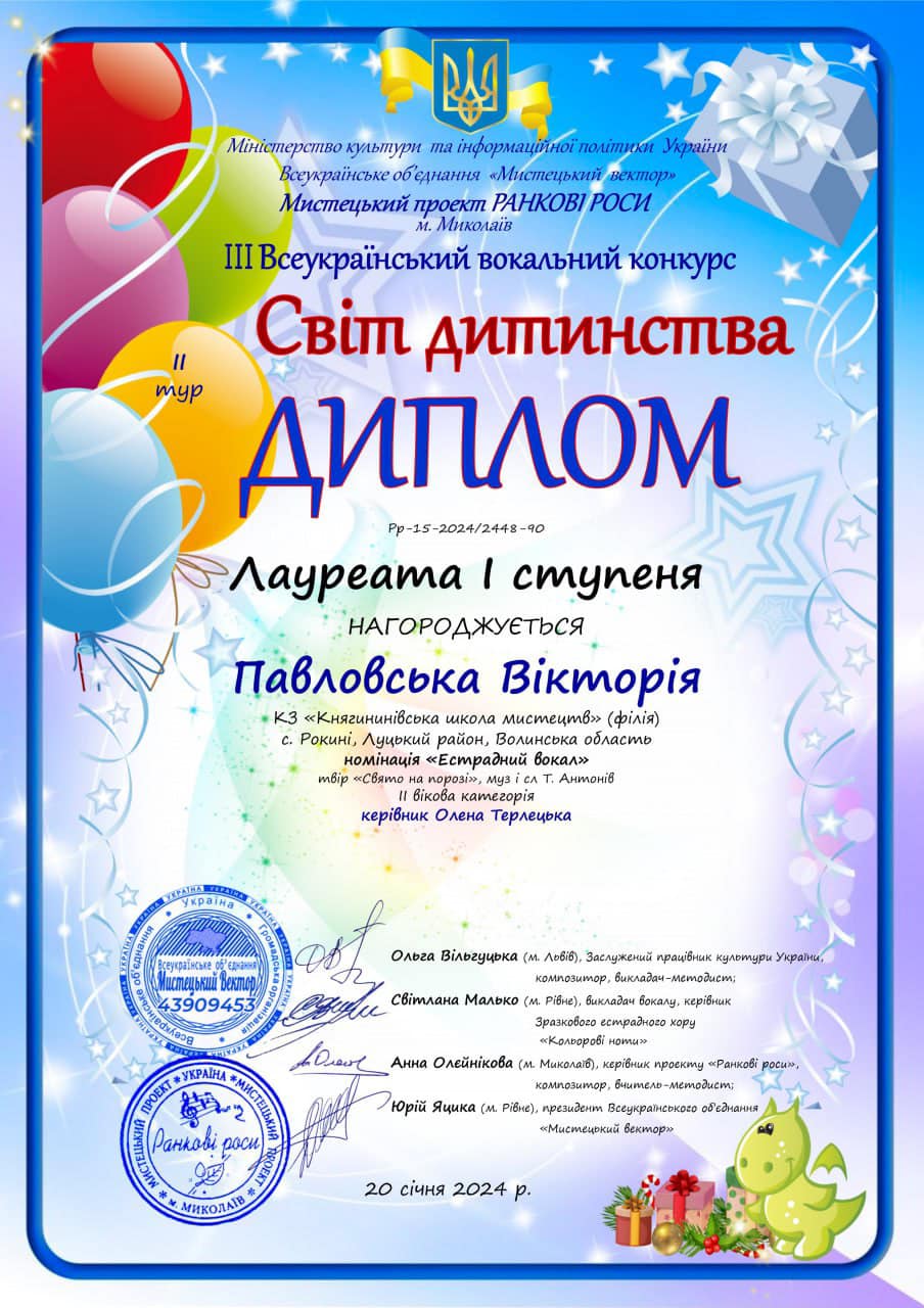 20 січня відбувся III Всеукраїнський двотуровий вокальний конкурс «СВІТ ДИТИНСТВА-2024» м. Миколаїв.