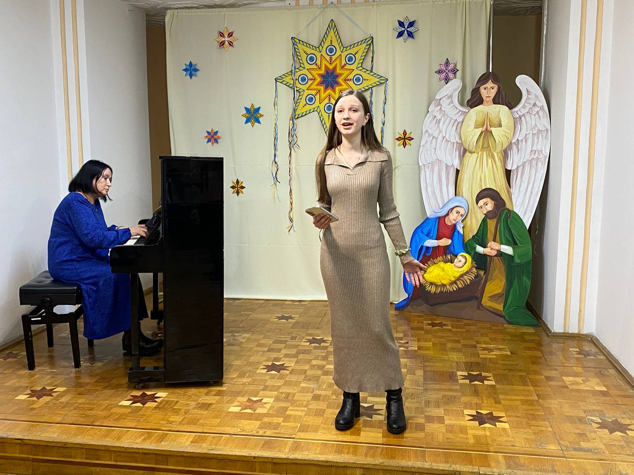 На сцені концертної зали КНЯГИНИНІВСЬКОЇ ШКОЛИ МИСТЕЦТВ слухали пісенні мелодії учнів класу сольного співу викладачів Галини БОБИЦЬКОЇ, Надії СТАДНЮК та Оксани КОБУК. Різдвяно-новорічний концерт-подарунок підготували для батьків. Святкова програма наповнена колядками та щедрівками від яких у залі по-справжньому запахло кутею. Особливо захоплював акапельний та ансамблевий спів.